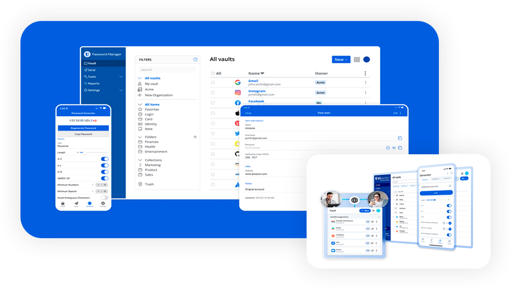 Armazena credenciais, cartões e notas seguras em um cofre digital onde apenas o você possui a chave mestra para descriptografar os dados.