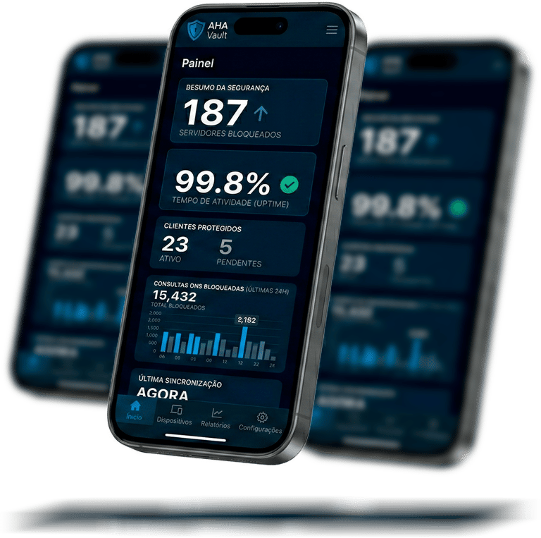 Controle absoluto sobre o tráfego da sua rede. Com a implementação do Guardião AHA vault, bloqueamos anúncios, rastreadores e domínios maliciosos diretamente na fonte. O resultado é uma navegação mais rápida, privada e segura para todos os dispositivos conectados, eliminando a telemetria indesejada e protegendo sua privacidade digital.
