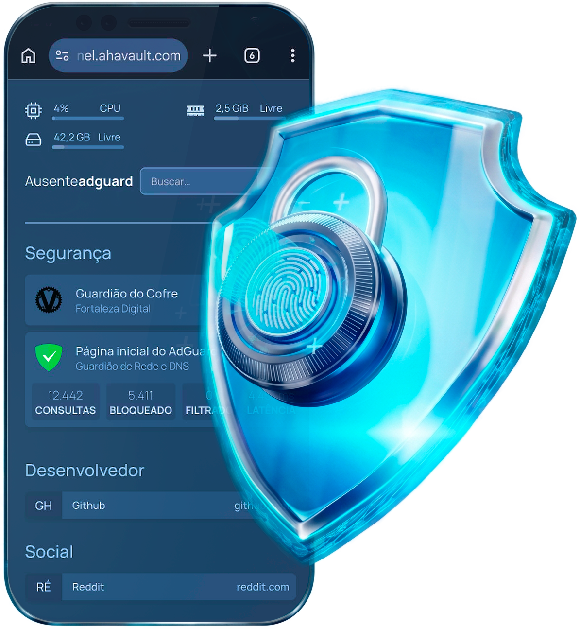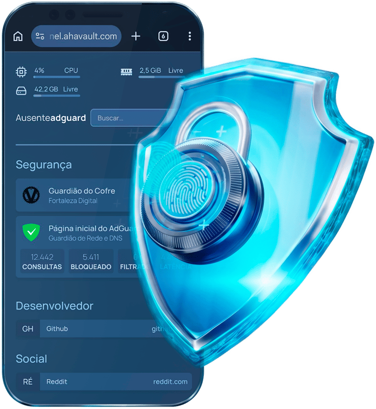 Controle absoluto sobre o tráfego da sua rede. Com a implementação do Guardião AHA vault, bloqueamos anúncios, rastreadores e domínios maliciosos diretamente na fonte. O resultado é uma navegação mais rápida, privada e segura para todos os dispositivos conectados, eliminando a telemetria indesejada e protegendo sua privacidade digital.